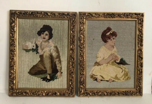 Title (ebay affiliate link): Pair of Antique and vintage Ornate Wood Picture Frames With Needlepoint
