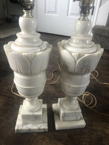Title (ebay affiliate link): PAIR of Huge Vintage Neoclassical Alabaster Carved Marble Table Lamps 30"