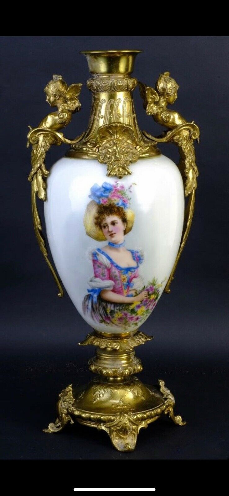 Title (ebay affiliate link): FRENCH LIMOGES ART NOUVEAU PAINTED PORCELAIN BEAUTY PORTRAIT VASE GILT METAL