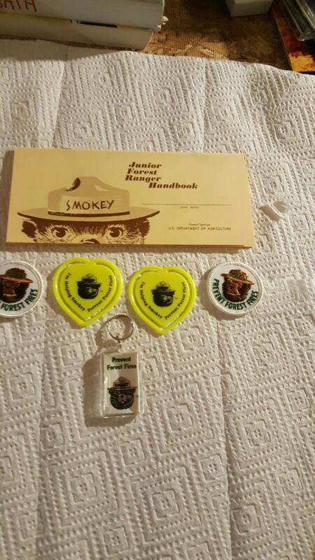 Title (ebay affiliate link): Vintage Smokey bear patches, bookmarks, key chain and Jr Forest Ranger Handbook!