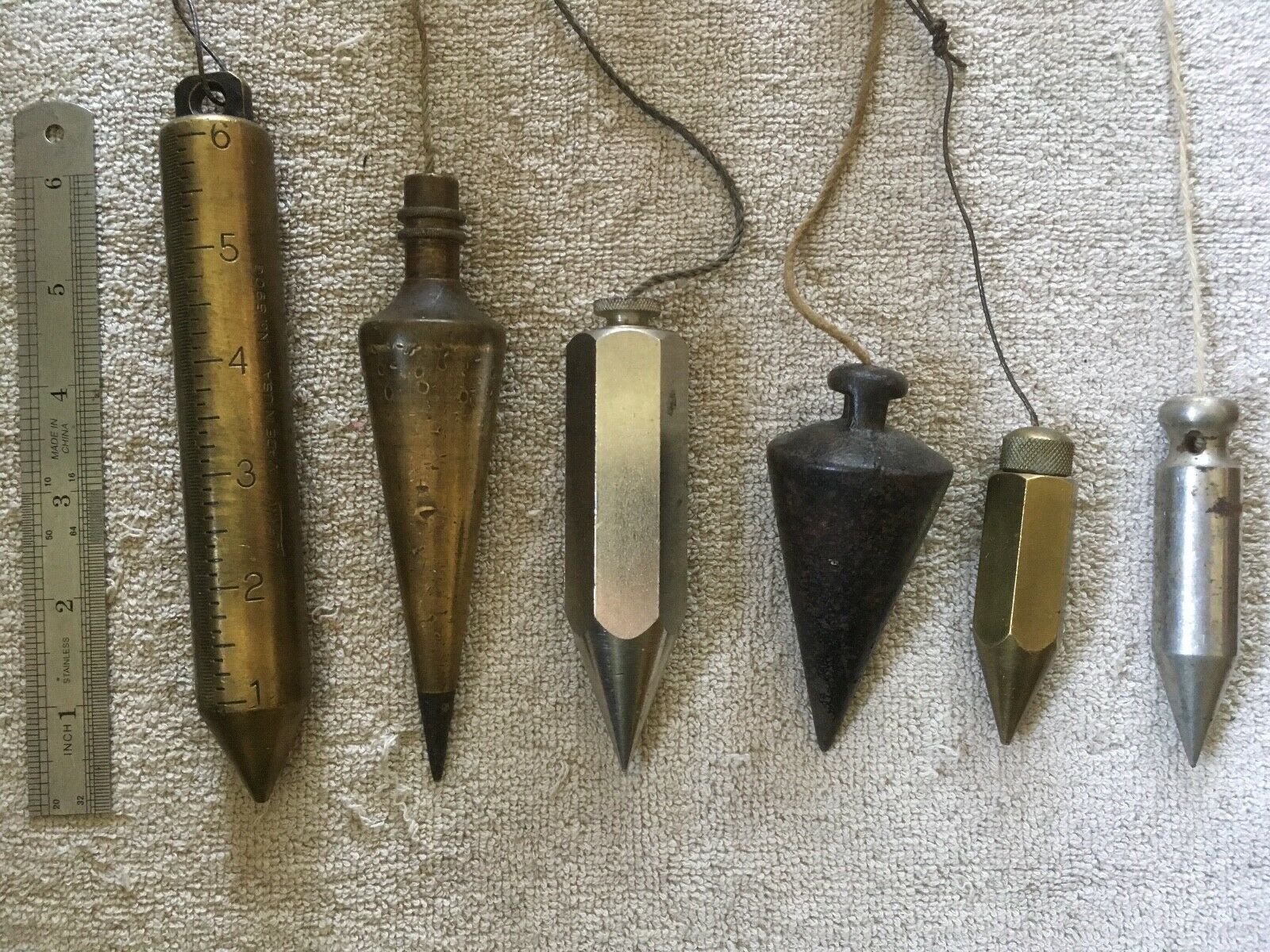 Vintage Plumb Bob Lot of 6, Lufkin, Ruleta,General,Miller''s Falls, Cast Iron
