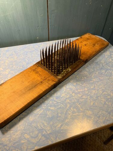 Title (ebay affiliate link): Unique Early Primitive Flax Hetchel Hand Made Farm Tool Hatchel Comb Carder