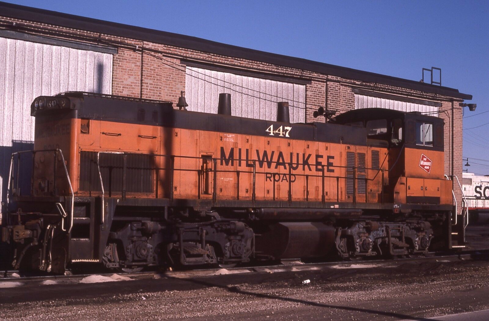 N: Original Slide MILW Milwaukee Road MP15AC #447 - Bensenville IL - 1986