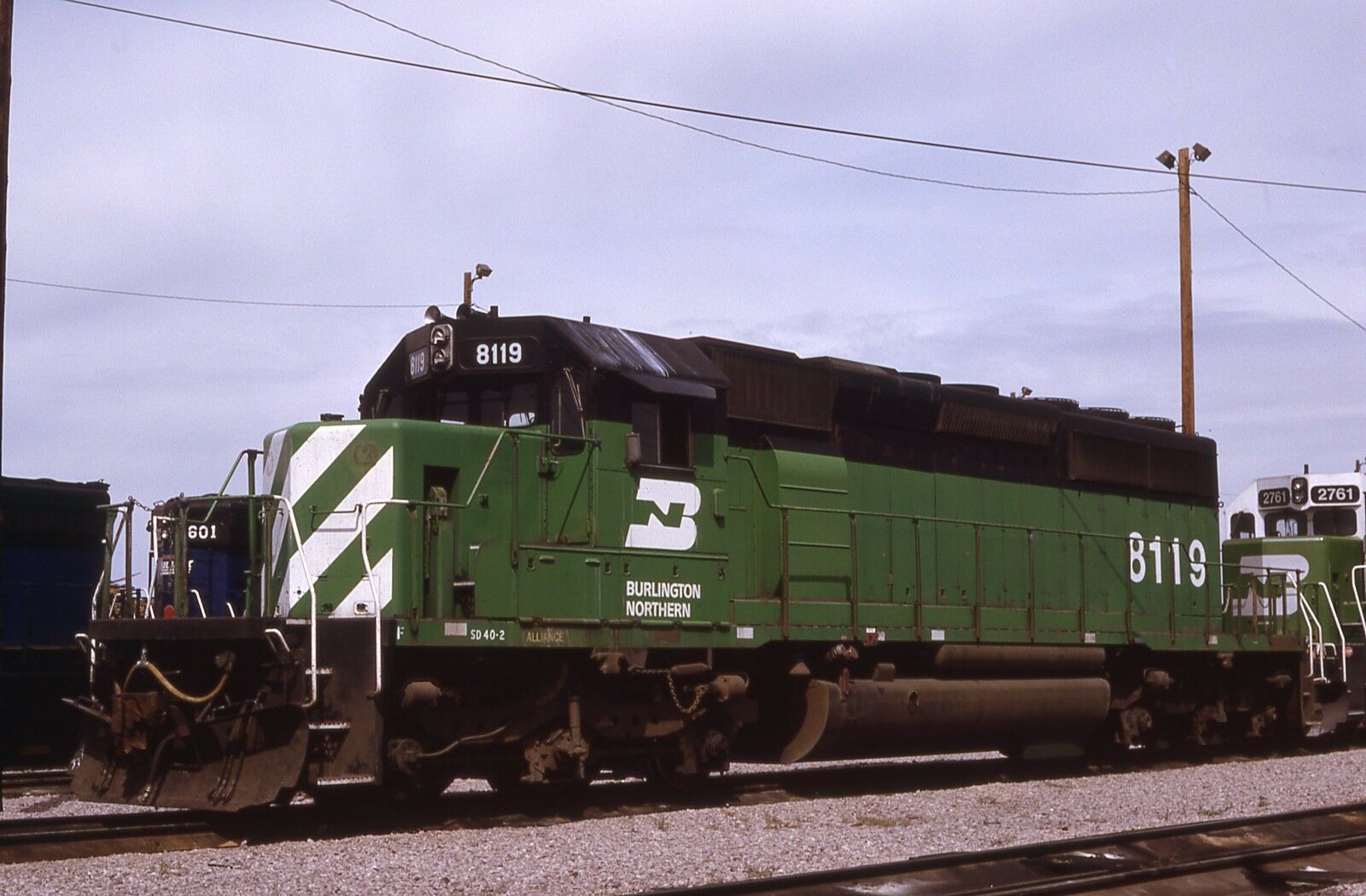 N: Orig Slide BN Burlington Northern SD40-2 #8119 - Laurel MT - 1992