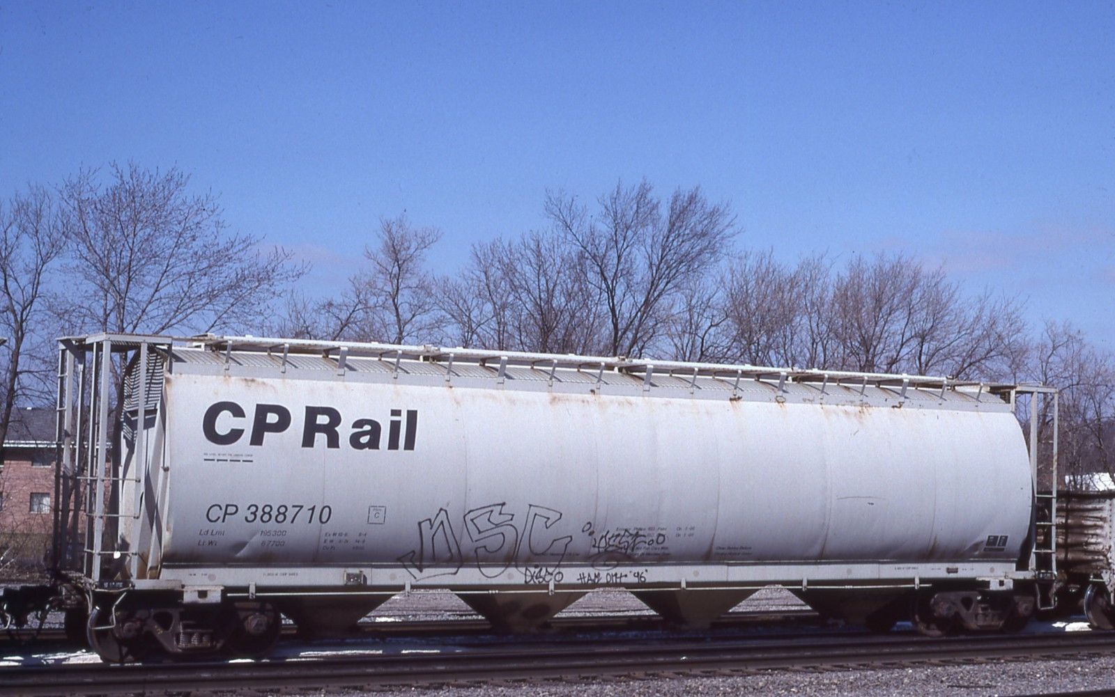 Orig Slide CP Rail Canadian Pacific 4 Bay Cylindrical Hopper #388710 in 1999