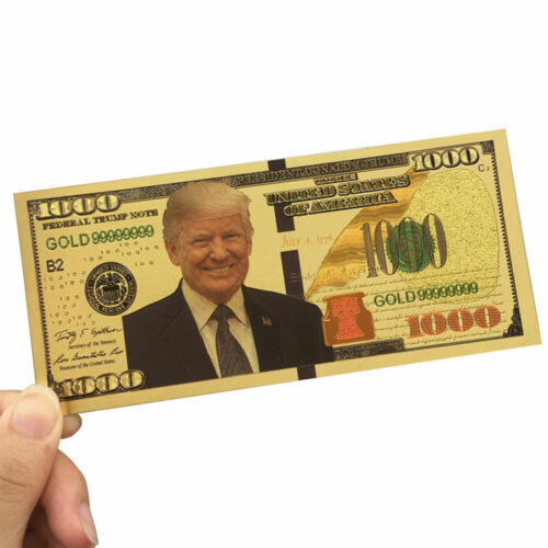 Title (ebay affiliate link): 1PC President Donald Trump New Colorized $1000 Dollar Bill Gold Foil Banknote EN