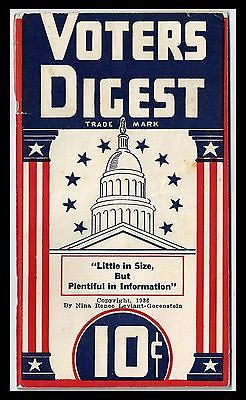 Title (ebay affiliate link): Voters Digest. "Little in Size, But Plentiful in Information". 1936. Booklet.