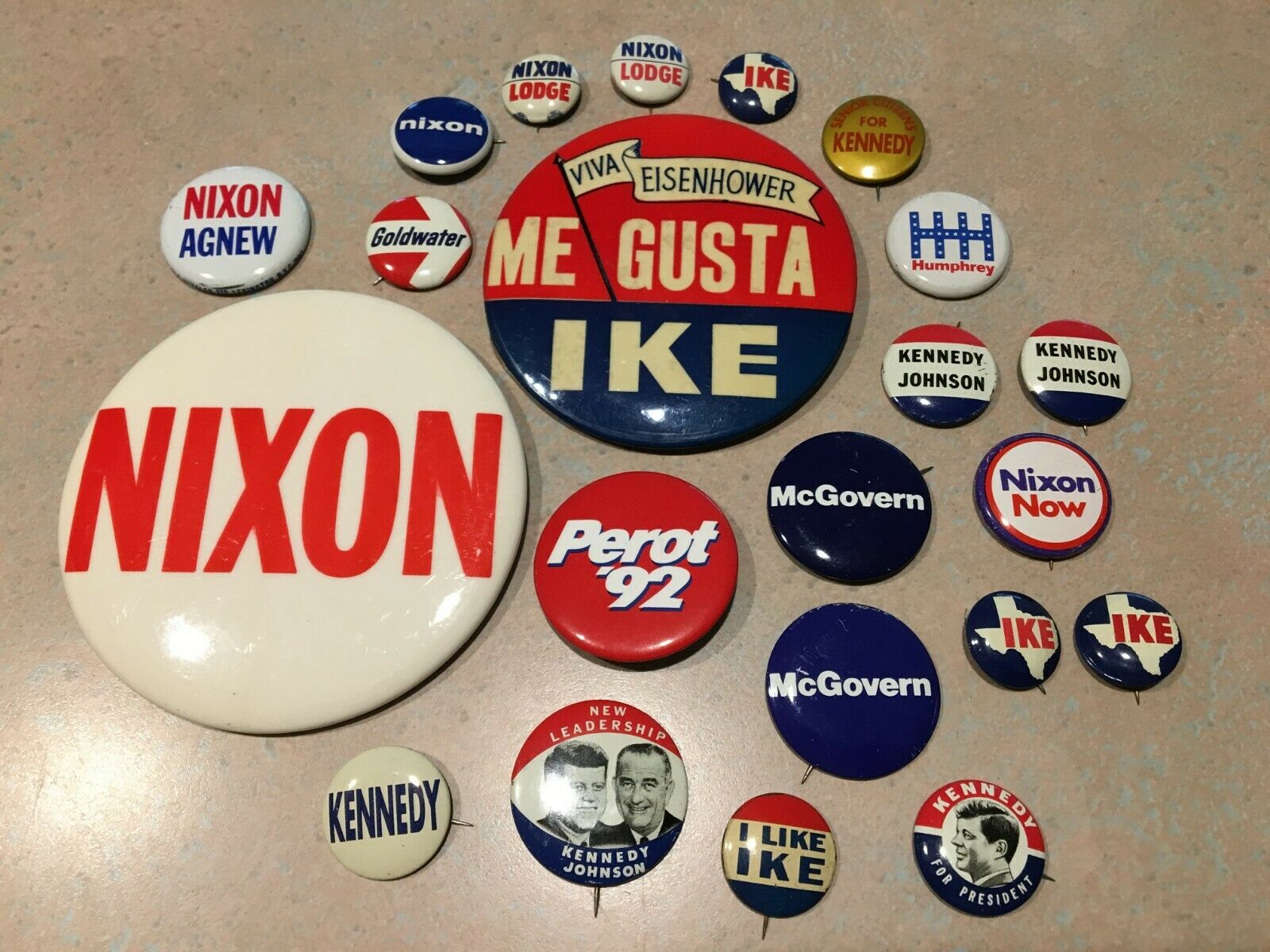 Title (ebay affiliate link): Vintage lot of 22 Presidential campaign buttons pins Nixon Kennedy Johnson Ike