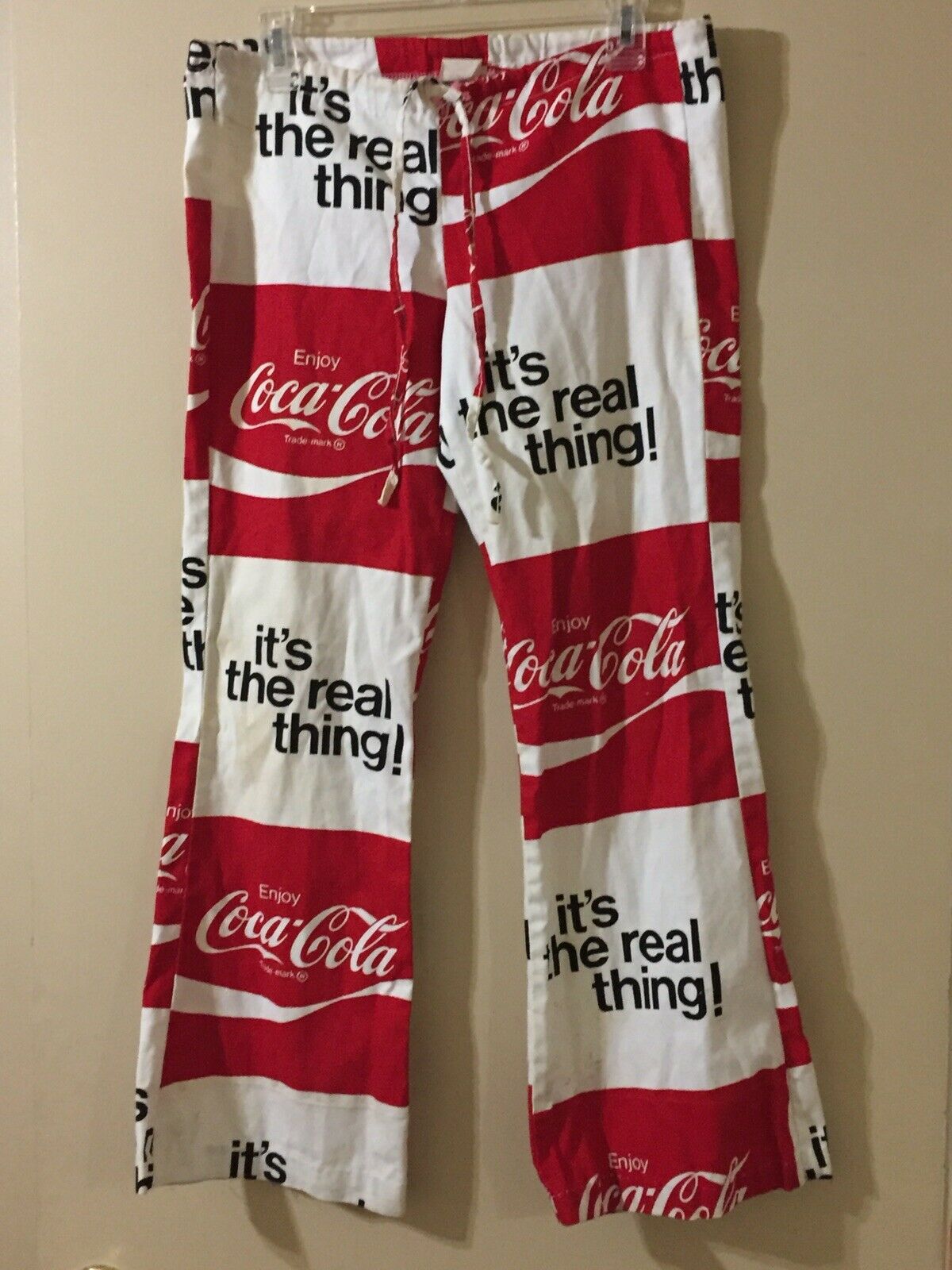 Title (ebay affiliate link): Vintage COCA COLA It''s The Real Thing BELL BOTTOM PANTS 34 X 36 Draw String
