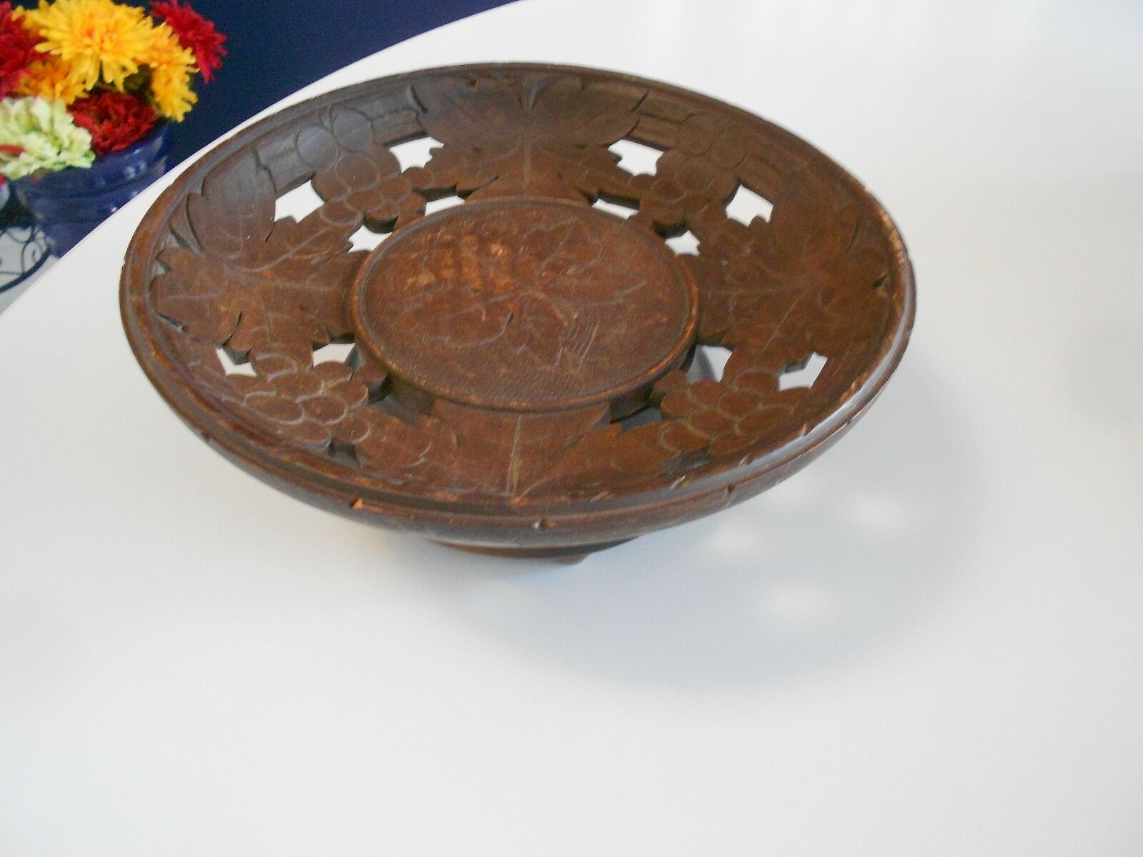 Title (ebay affiliate link): vintage musical wooden bowl carved leaf design -working-7 3/4" x 3" very good