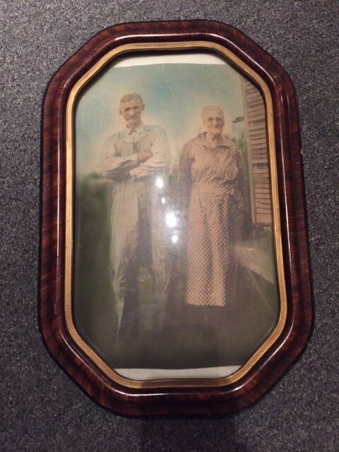 Antique Art Deco Convex Bubble Glass Picture Frame Photograph Grandma Grandpa