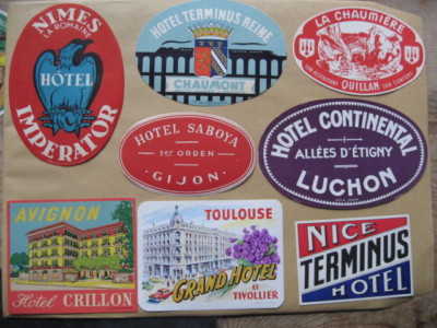 8 Vintage Hotel Luggage labels FRANCE