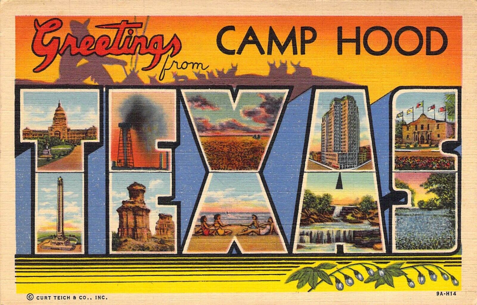 Title (ebay affiliate link): WW2 Linen Era, Large Letter,Greetings From Camp Hood Texas,Message, Old Postcard