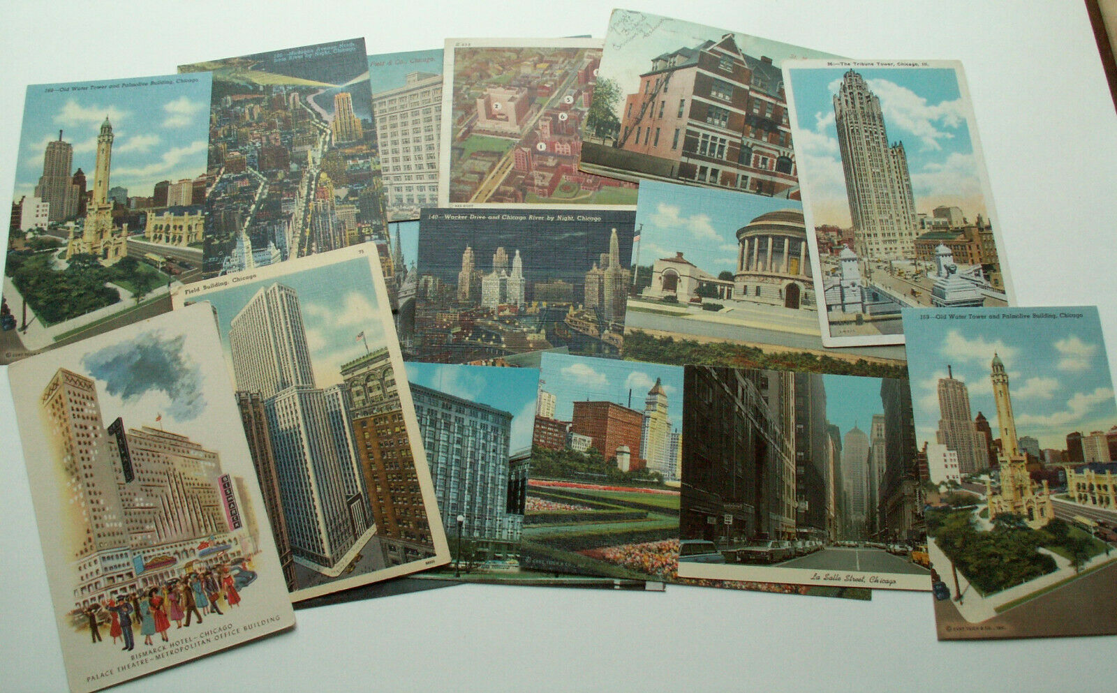 VINTAGE POSTCARDS CHICAGO SCENES Used & Unused LOT OF 16, Some Curt Teich