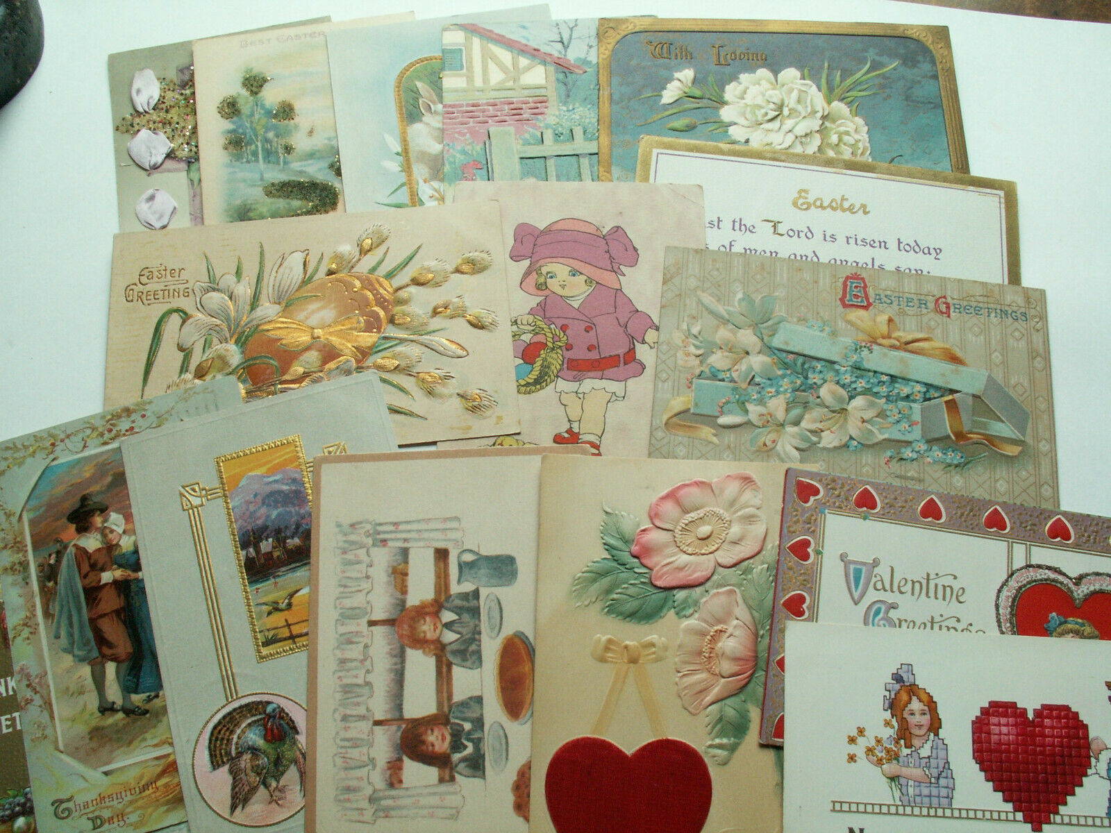VINTAGE POSTCARDS, THANKSGIVING, VALENTINE, EASTER, Lot of 16 cards