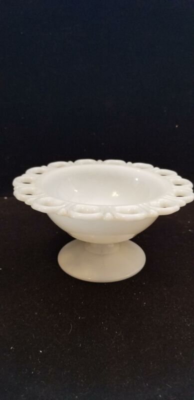 Vintage 7" Open Compote Pedestal Bowl Lace Edge Milk Glass by Anchor Hocking