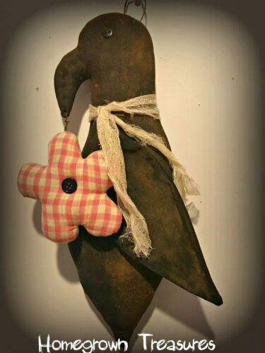 Title (ebay affiliate link): Primitive Spring/Summer! Homespun Crow with Posy Door Hanger!!