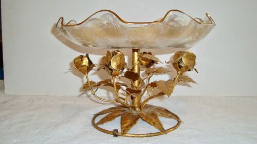 Large Vintage Italian Tole Toleware Centerpiece Bowl w/ Transfer Ware Roses