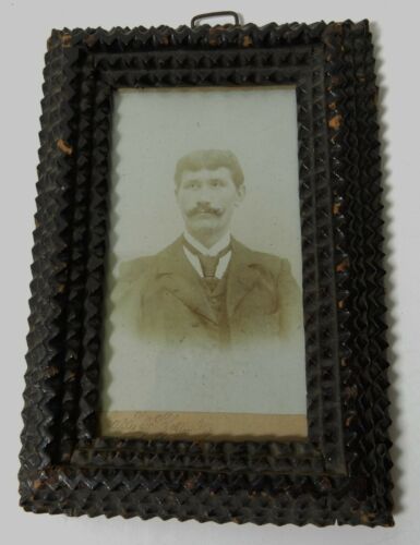 ANTIQUE 4 LAYER TRAMP ART WOOD PICTURE FRAME W/ OLD PHOTO