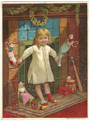 Baseball: Christmas Themed Trade Card; Child & BB Bat