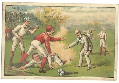 Baseball: 1880s Trade Card: Umpire; "Chance for a Kick"