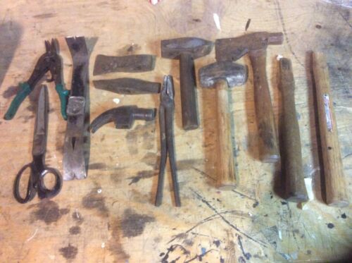 VINTAGE BLACKSMITH TOOL LOT axe ,HAMMER, heads TONGS scissors snips pry bar