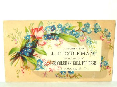 1800s VICTORIAN TRADE CARD COLEMAN ROLL TOP DESK