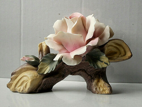 Title (ebay affiliate link): Capodimonte Italy Porcelain 7" x 4.5" Pink Rose On Branch With Leaves And Bud