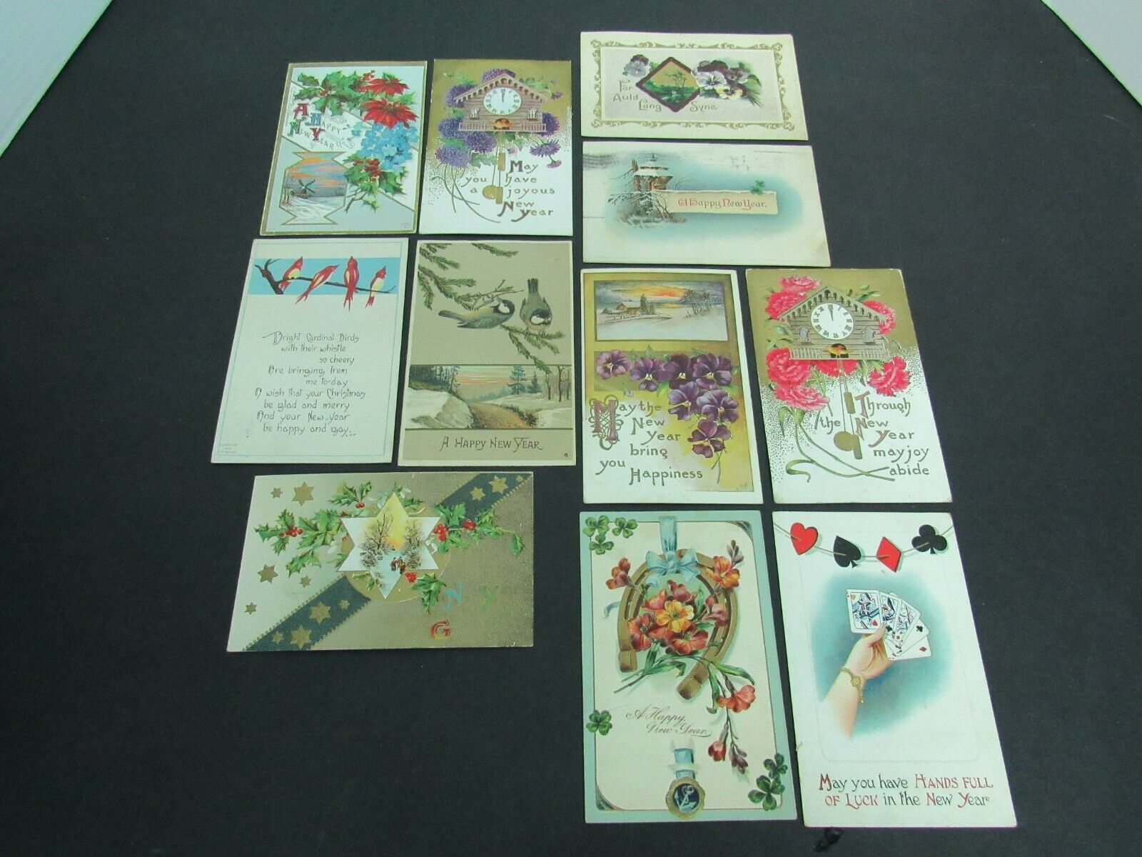 Lot of 11 NEW YEAR Postcards - Divided, Embossed - Postmarks from 1910 - 1914