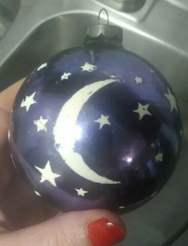 Title (ebay affiliate link): Vintage Purple Moon & Stars Round Glass Christmas Ornament 1930s Excellent