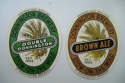 PAIR MINT DONNINGTON BREWERY DOUBLE DONNINGTON & BROWN ALE BEER BOTTLE LABELS