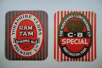 MINT PAIR YORKSHIRE CLUBS HUNTINGTON YORK RAM TAM BREWERY BEER BOTTLE LABELS