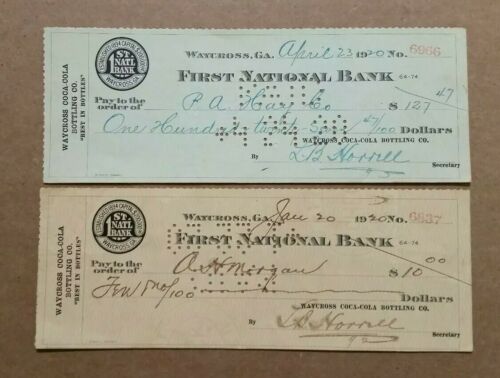 Title (ebay affiliate link): Waycross Coca-Cola Bottling Co.,Waycross,GA.,Company Checks (2),1920