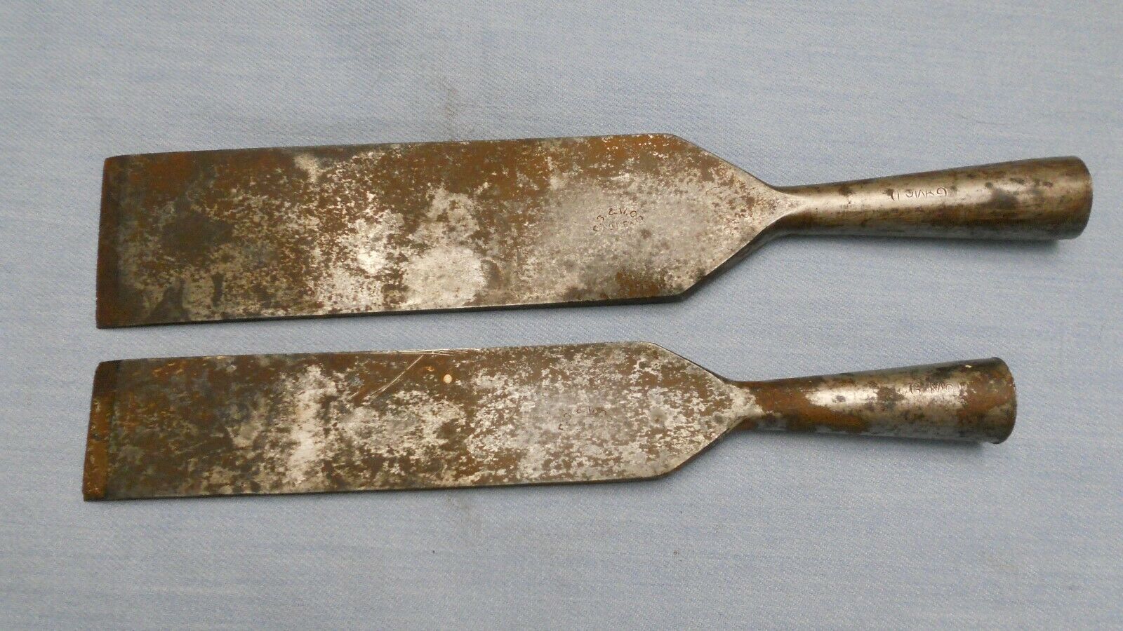 VINTAGE LOT OF 2 PS&W PECK STOWE & WILCOX CHISELS SLICK 2" AND 1 1/2" NO HANDLE