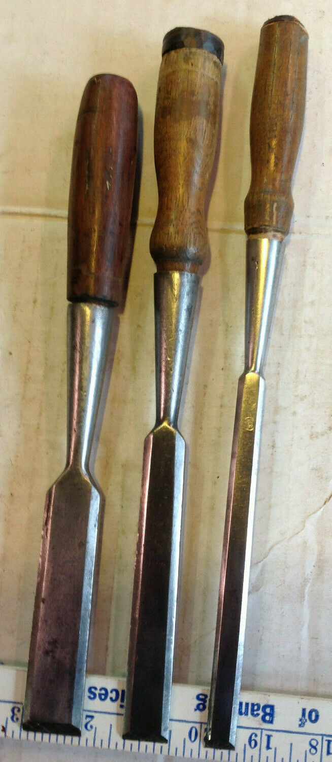 Title (ebay affiliate link): Antique /Vintage Woodworking Carpentry Bevel Edged Firmer Chisels Lot #1