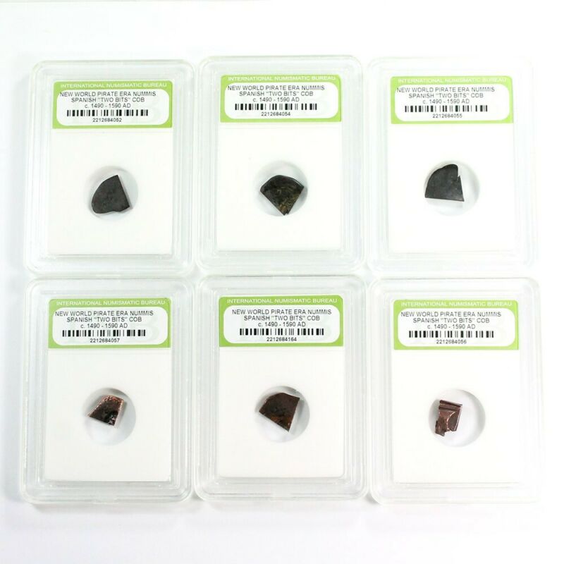 Title (ebay affiliate link): Lot of 6 "Two Bits" Early America Spanish Pirate Cob #1a