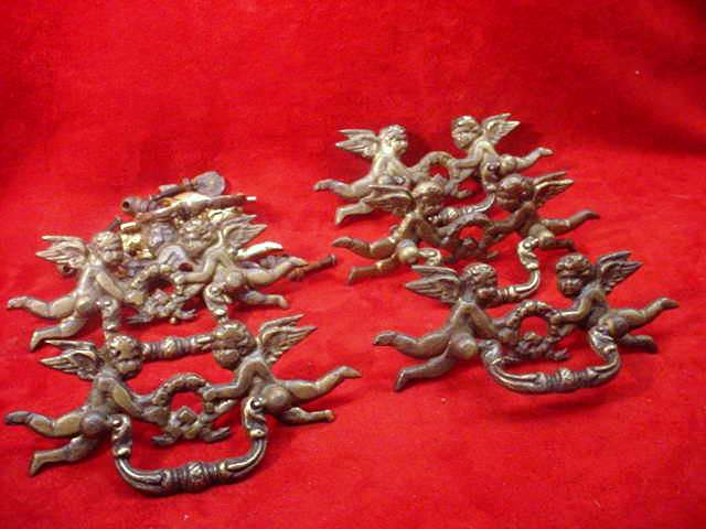 6 ANTIQUE FURNITURE PULLS WITH ANGELS / CHERUB