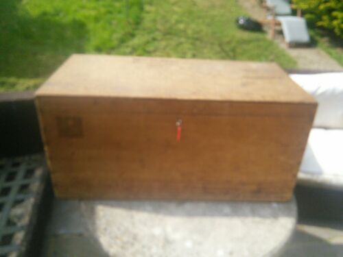 Vintage Pine chest ,trunk + Key. Vgc His Majesty Services