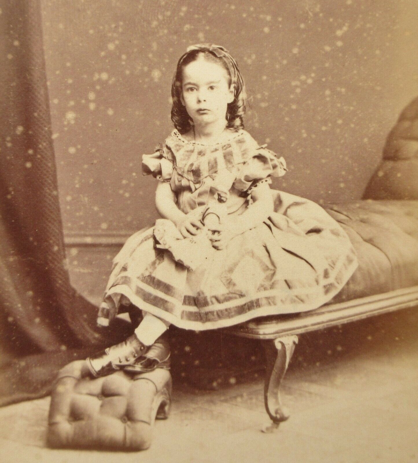 CDV GIRL RINGLETS IN HAIR HOLDING DOLL ANTIQUE VICTORIAN PHOTO LONDON FASHION