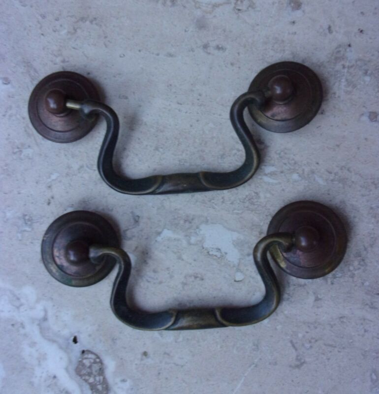 Title (ebay affiliate link): 2) Vintage Brass Drop Bail Style Furniture Drawer Pulls Hardware No Screws
