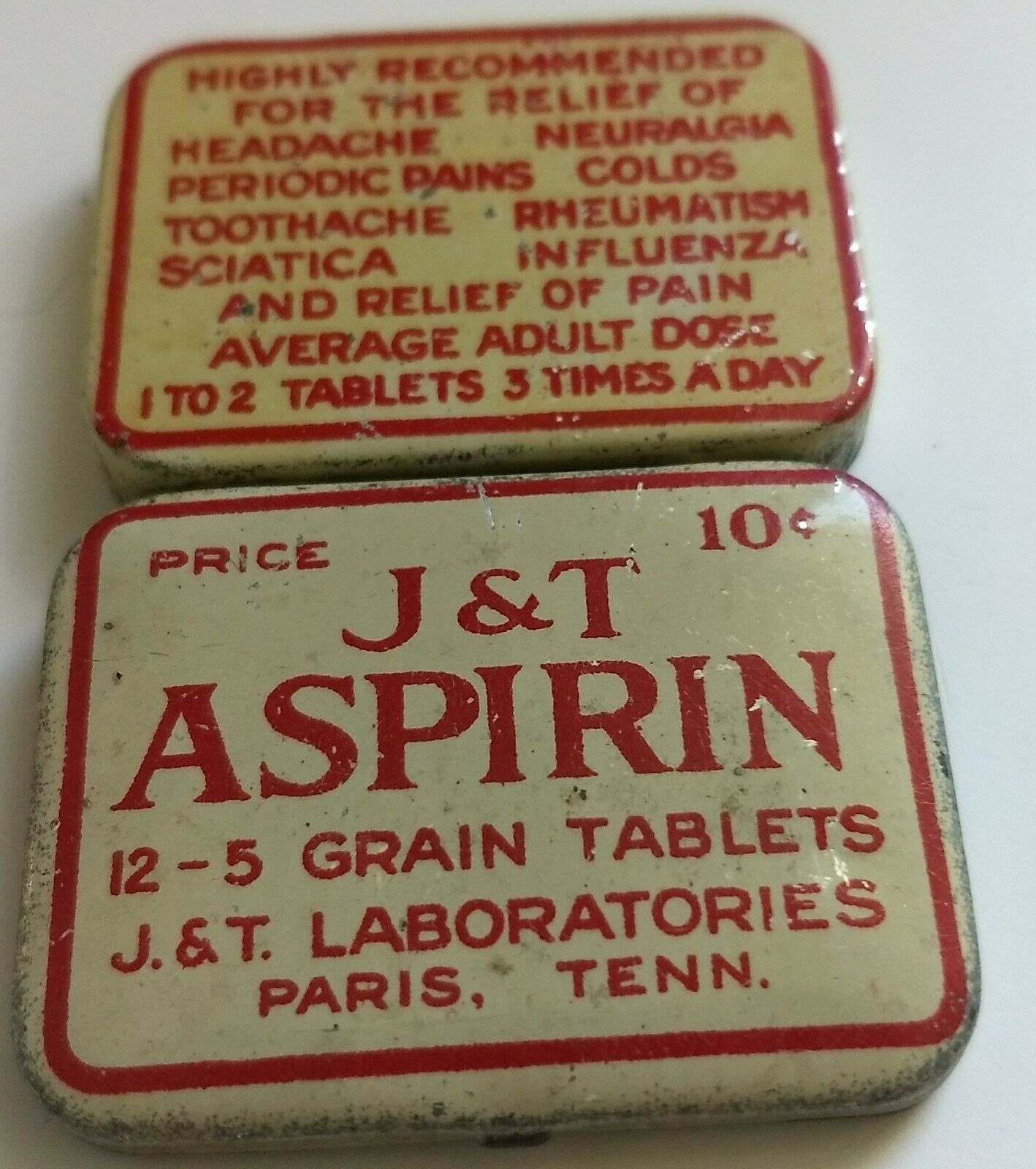 Title (ebay affiliate link): J&T Aspirin Advertising Medicine Tin Empty J&T Laboratories Paris Tennessee