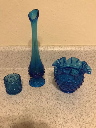 Lot Of 3 - Cobalt Blue Bubble Glass