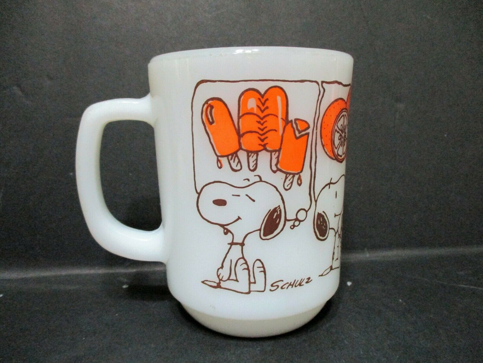 Vtg Snoopy 1958 Sweet Dreams Ice Cream Anchor Hocking Fire King Milk Glass Mug