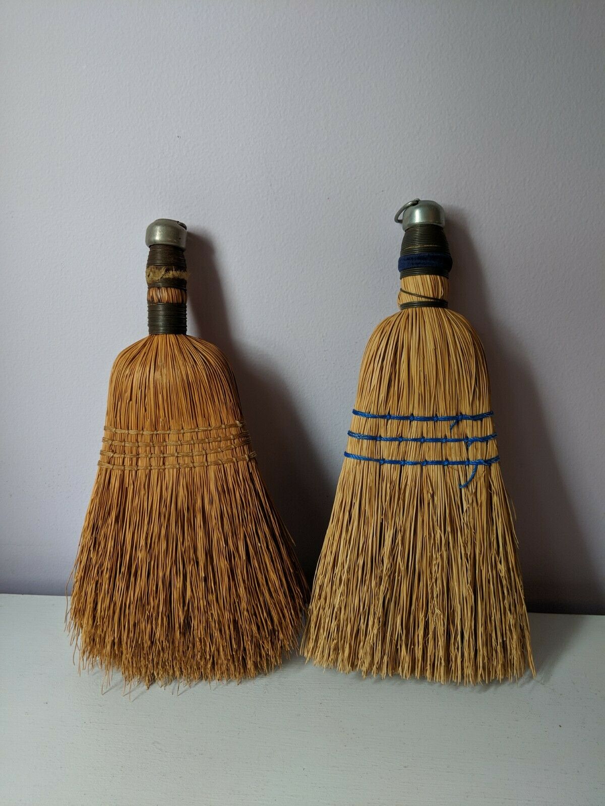 Vintage Whisk Brooms [2] Blue Thread & Tan Thread w / Working Hangars 12" length