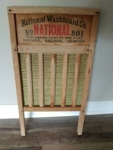 Title (ebay affiliate link): Antique National Washboard Co. 801 Chicago Saginaw Memphis Brass King Primitive