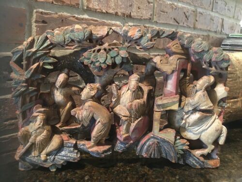 Vintage Asian Carved Wood Plaque