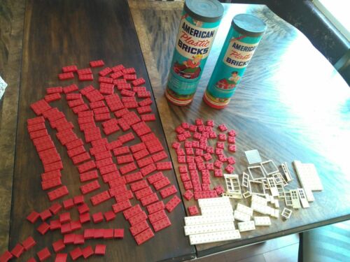 Vintage HALSAM AMERICAN PLASTIC BRICKS BUILDING Toy Set No. 715, 705 incomplete