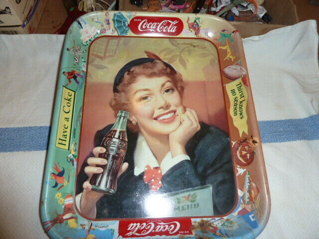Title (ebay affiliate link): Vintage 1953 1950s Menu Girl Coke Coca Cola Serving Tray Thirst Knows No Season