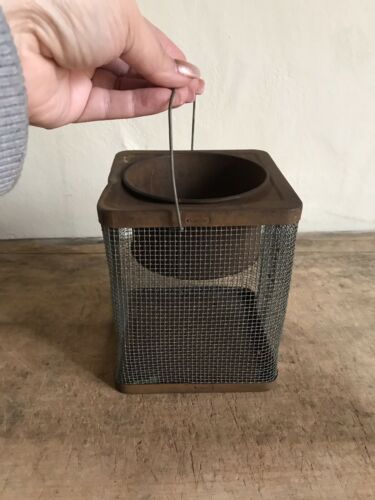Title (ebay affiliate link): Sweet Old Small Bail Handle Hanging Tin Cricket Cage Carrier Patina AAFA