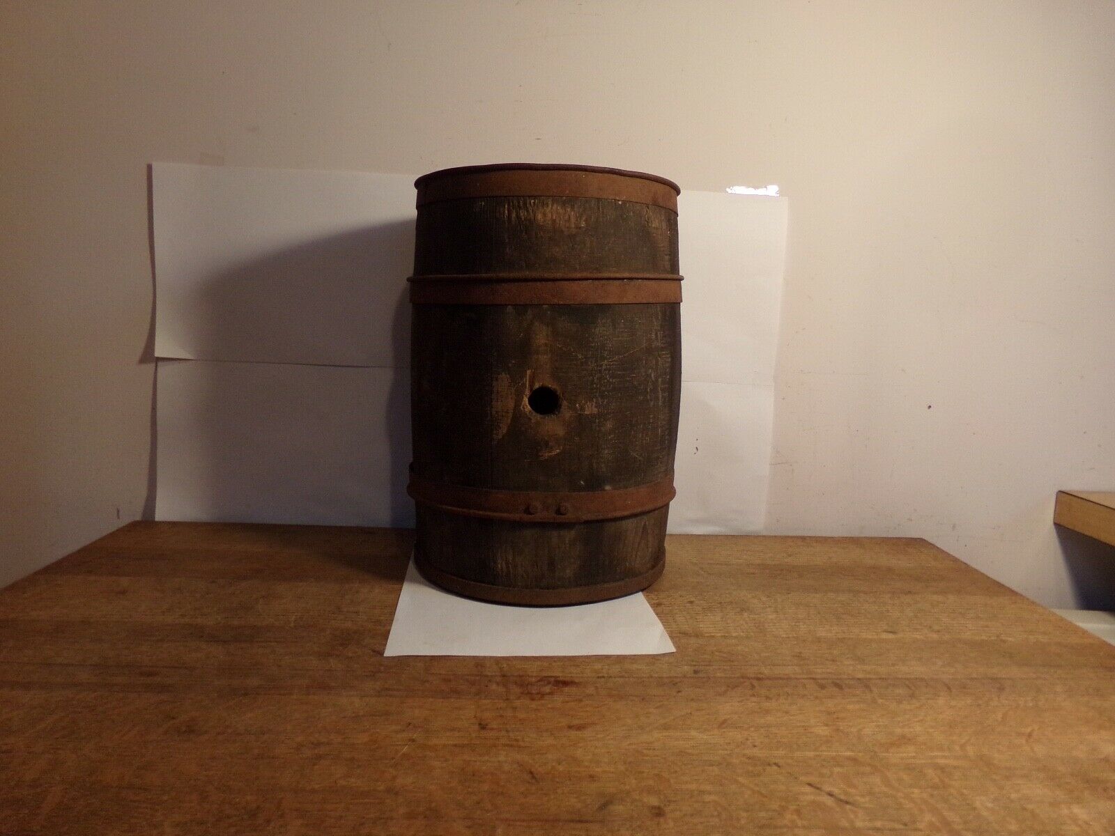 Antique 14" wood barrel,BRAIR POINT with iron bands, . Whiskey rum bar man cave.